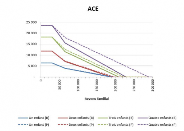 Imaginez une famille de 6 (2 de moins de 6 ans) gagnant 341 000 $ avec une ACE deux fois plus généreuse que l’ancien programme (en tenant compte d’un impôt sur la PUGE), c’était pas mal moins vendeur pour la classe « moyenne ». Ouais, finalement … je pense que c’est ça… à moins que ce ne soit pour limiter le déficit! À vous de choisir.
